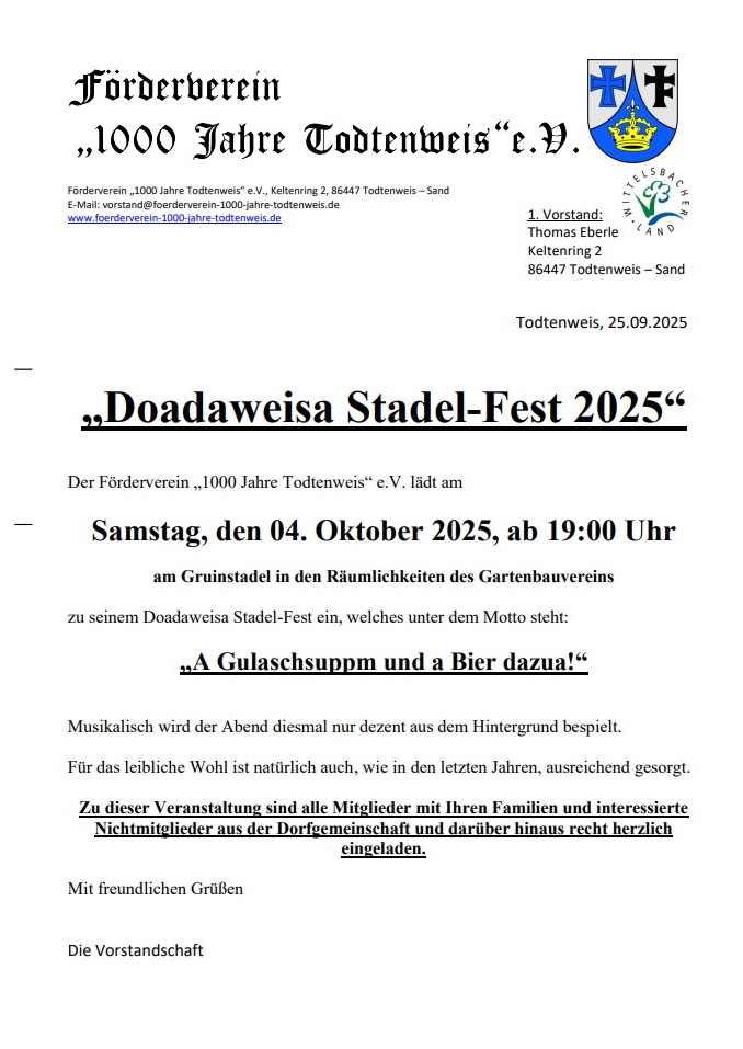 Der Förderverein „1000 Jahre Todtenweis“ e.V. lädt am