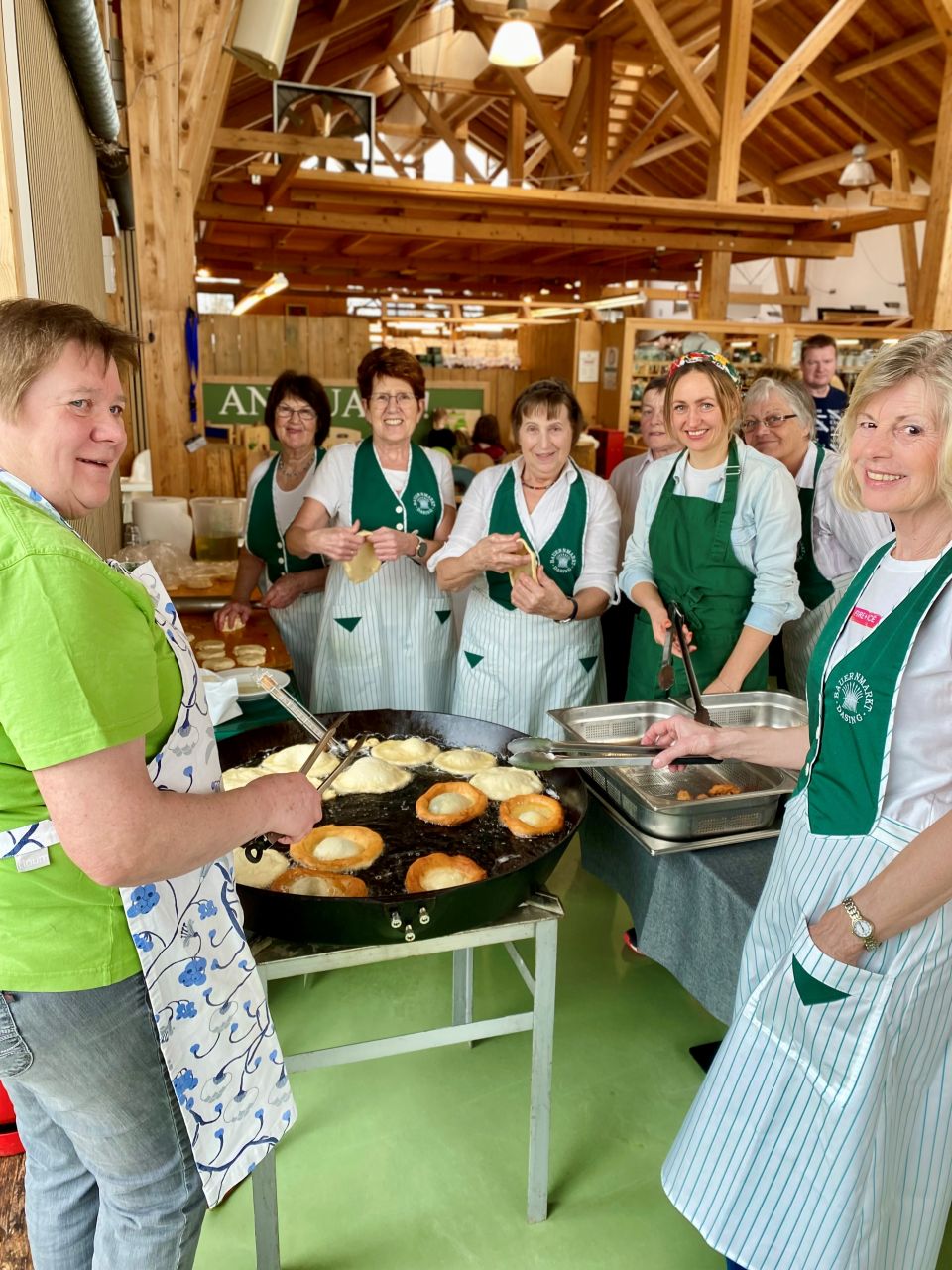 Man kann schon sagen, dass es Tradition ist: Am Faschingssonntag backen unsere Bäuerinnen wieder frische Kiachlan in der großen Pfanne in unserer Markthalle!